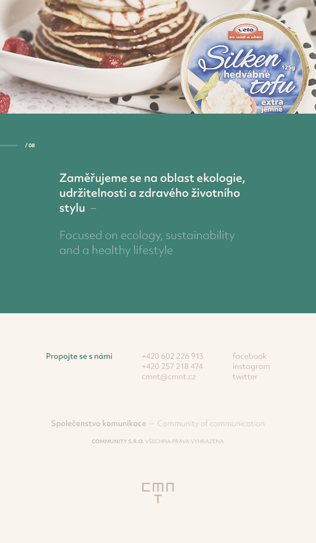 Agentura, která našla svoji specializaci v oblasti ekologie a udržitelnosti zkrátka nemůže existovat bez důstojné webové prezentace. A už vůbec ne, pokud je středobodem jejího působení komunikace v online prostředí. Ve spolupráci se Studiem GAT jsme tedy přesně takovou prezentaci připravili a věříme, že bude důstojným zahájením dialogu mezi vámi a Společenstvem komunikace.
